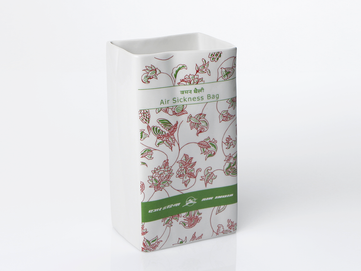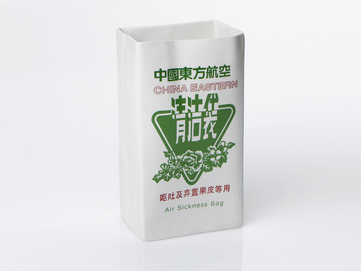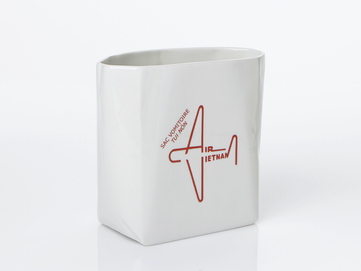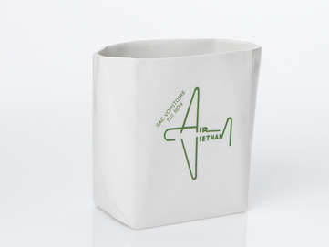 Air-sicknessbags, die bei Turbulenzen im Flugzeug herhalten müssen waren hier die Vorlage für eine Vasen-und Schalenserie. Die Produkte sind mit alten Motiven asiatischer Fluglinien bedruckt. Die Schale eignet sich hervorragend für Obst, aber auch für Knabbereien.